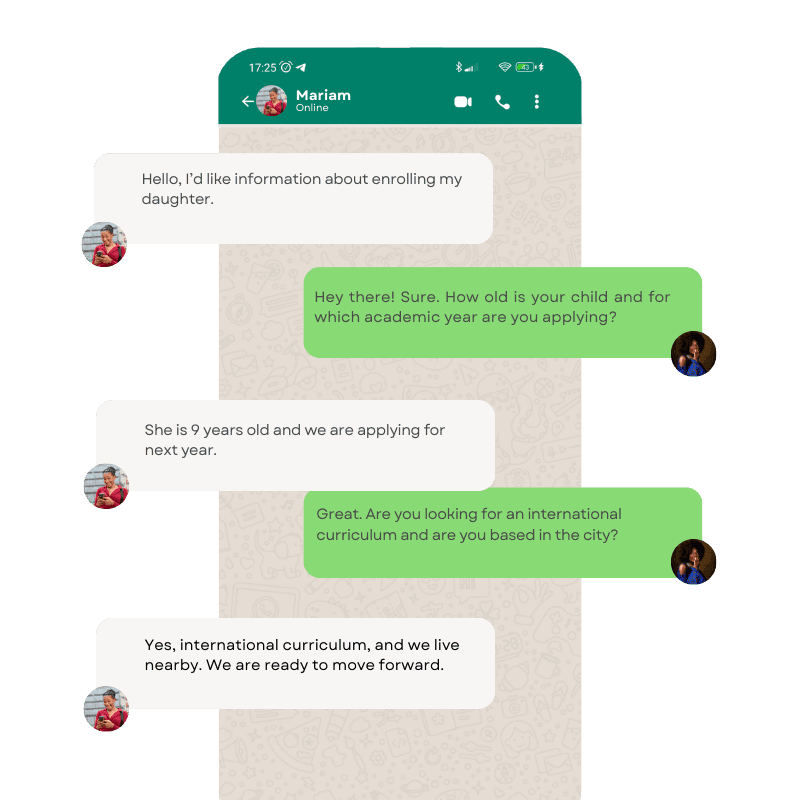 Palete handles conversations automatically and sends only high-intent leads to your admissions team, ready to be converted.